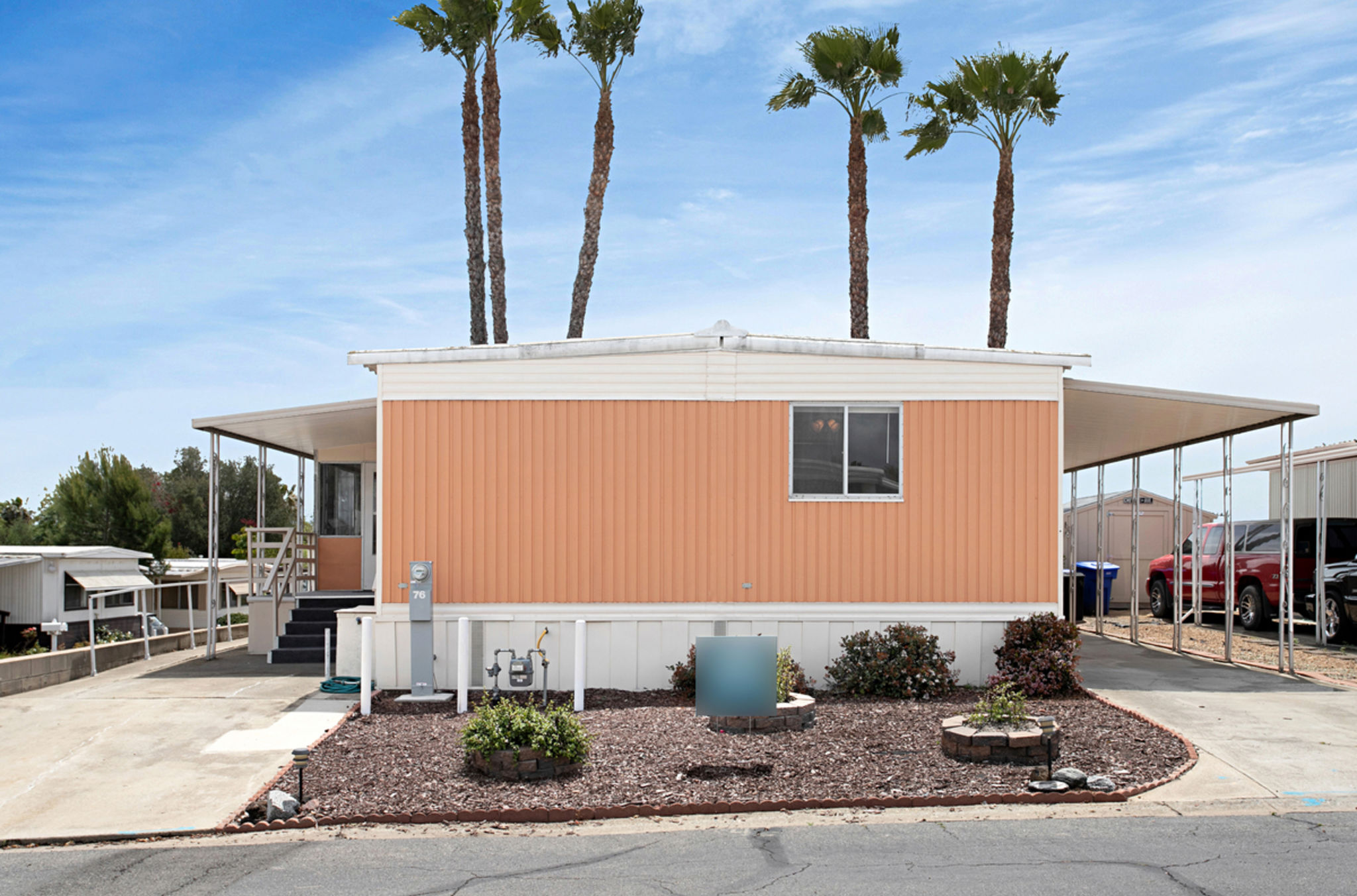 MUST SEE!! This home is ready for it's new owners to enjoy. Corner space in a wonderful Mobile Home Park in Fallbrook. Two generous bedrooms and 2 spacious bathrooms compliment a very large living room, along side an open concept kitchen and adjacent dining area. The California room offers views, relaxation and a ton of extra space. This elevated space allows for views from the kitchen and living room
